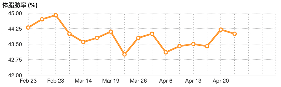 体重が同じであっても実は体脂肪率が下がっていることもあるから、毎回必ず体脂肪率もチェックするようにしましょう。