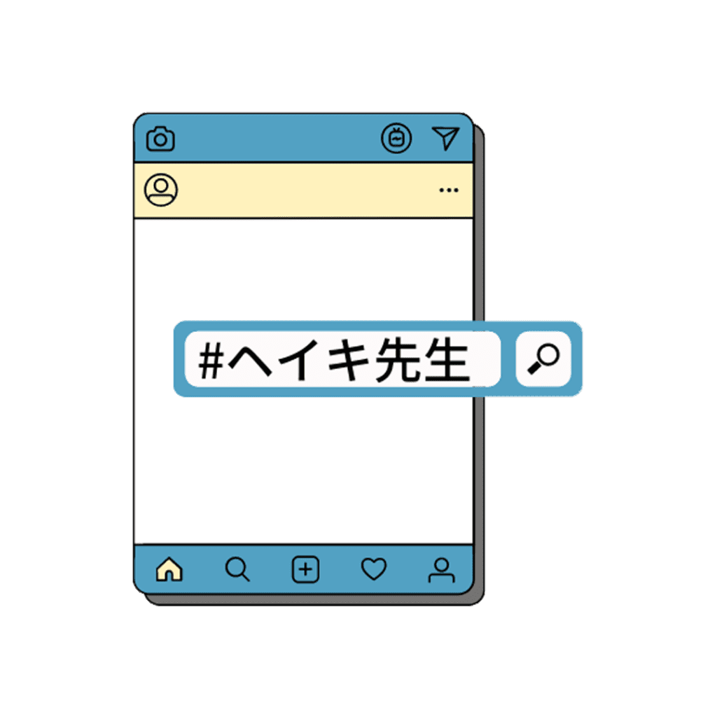 インスタグラム検索欄に『 #ヘイキ先生 』+ 『 キーワード 』を入力するだけ。